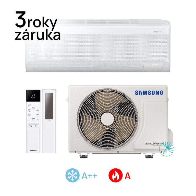 Tichý provoz – od 19 dB(A). WindFreeTM – získejte pocit příjemného chládku, ne skutečné zimy, a navíc se sníženými náklady na energie. AI Auto Comfort – automatická optimalizace režimu na základě analýzy okolního prostředí. Rychlé chlazení – chladí rychleji a do všech směrů i větších prostor. SmartThings – Wi-Fi vzdálená kontrola kdykoli a odkudkoli. Auto Clean – klimatizace se sama automaticky vyčistí. Easy Filter Plus – antibakteriální filtr, který se snadno čistí. DuraFin™ Plus – předchází korozi, pro klimatizaci s dlouhou životností. Chladivo R32 – chladivo šetrné k životnímu prostředí. ECO Mode – efektivní chlazení, snížená spotřeba energie, nižší náklady. Good Sleep – režim kontrolující teplotu místnosti pro zajištění dobrého spánku. Infračervený solární ovladač v balení